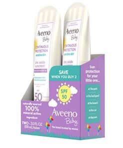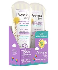 Aveeno Baby Continuous Protection Zinc Oxide Mineral Sunscreen Lotion for Sensitive Skin, 2 x 3 fl. oz