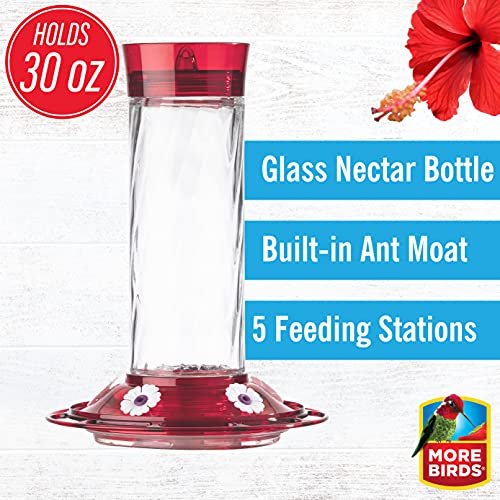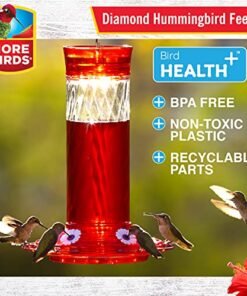 Details: The More Birds Diamond Hummingbird Feeder Features A Glass Nectar Bottle, A Red Top And Basin, And Seven Integrated Perch Feeding Stations. The Built In Ant Moat Stops Ants In Their Tracks, Helping Keep Nectar Fresh For Hungry Hummers. With A 30 Ounce Capacity, The Diamond Provides Plenty Of Nectar To Keep Hummingbirds Happy And Coming Back For More. The Wide Bottle Opening And Detachable Flat Base Make Filling And Cleaning A Breeze. Imported From USA.