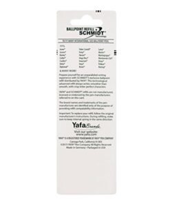 Details: Schmidt liquid ink refills offer great performance and easy handling. This convenience is owed to an easy and smooth gliding over the paper. Pen manufacturers all over the world rely on liquid ink refills from Schmidt Technology.